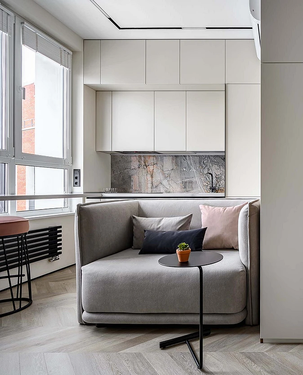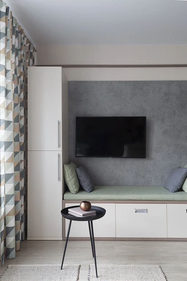 Если в квартире одна жилая комната, можно совместить в ней несколько функций. В этом помогает мебель-трансформер: от простого раскладного дивана до более сложной конструкции с системой хранения. Днем пространство выглядит как аккуратная гостиная, а ночью превращается в полноценную зону отдыха с удобным спальным местом.