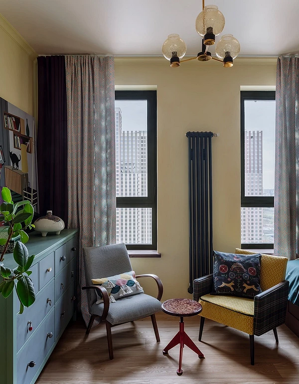 Иногда при всем желании места для дивана нет, но это не значит, что от гостиной зоны нужно в принципе отказаться. Пара уютных кресел с небольшим кофейным столиком между ними займут меньше места и создадут комфортную зону для общения. Такого набора мебели вполне достаточно для отдыха с книгой или фильмом одному человеку или паре. К тому же кресла проще передвинуть, если захочется освежить обстановку.