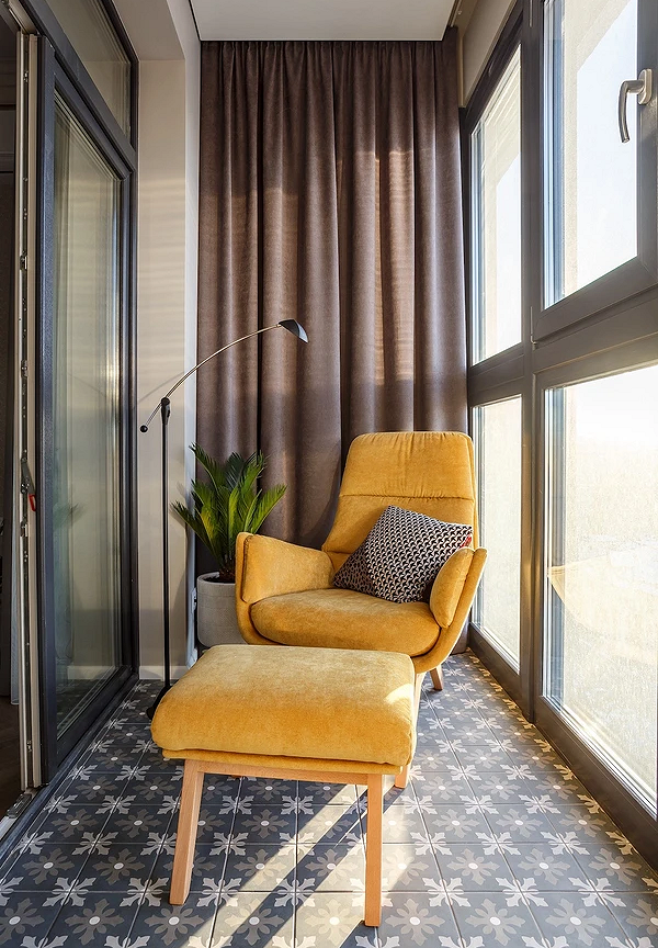 Если в квартире есть застекленный и утепленный балкон, его можно превратить в камерную гостиную. Даже на узкой лоджии поместятся компактное кресло, небольшой столик и пара полок для книг. Это идеальный вариант для создания уединенного уголка, где можно выпить кофе, пообщаться с гостем или поработать в тишине. Обязательно продумайте освещение и добавьте текстиль для уюта. Такой прием фактически добавляет еще одну комнату, не затрагивая существующие.