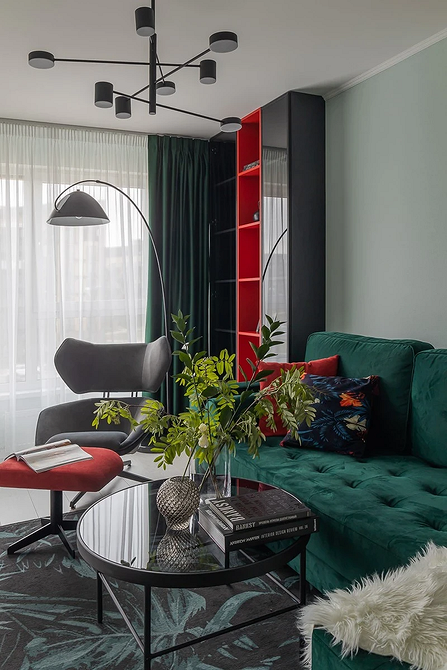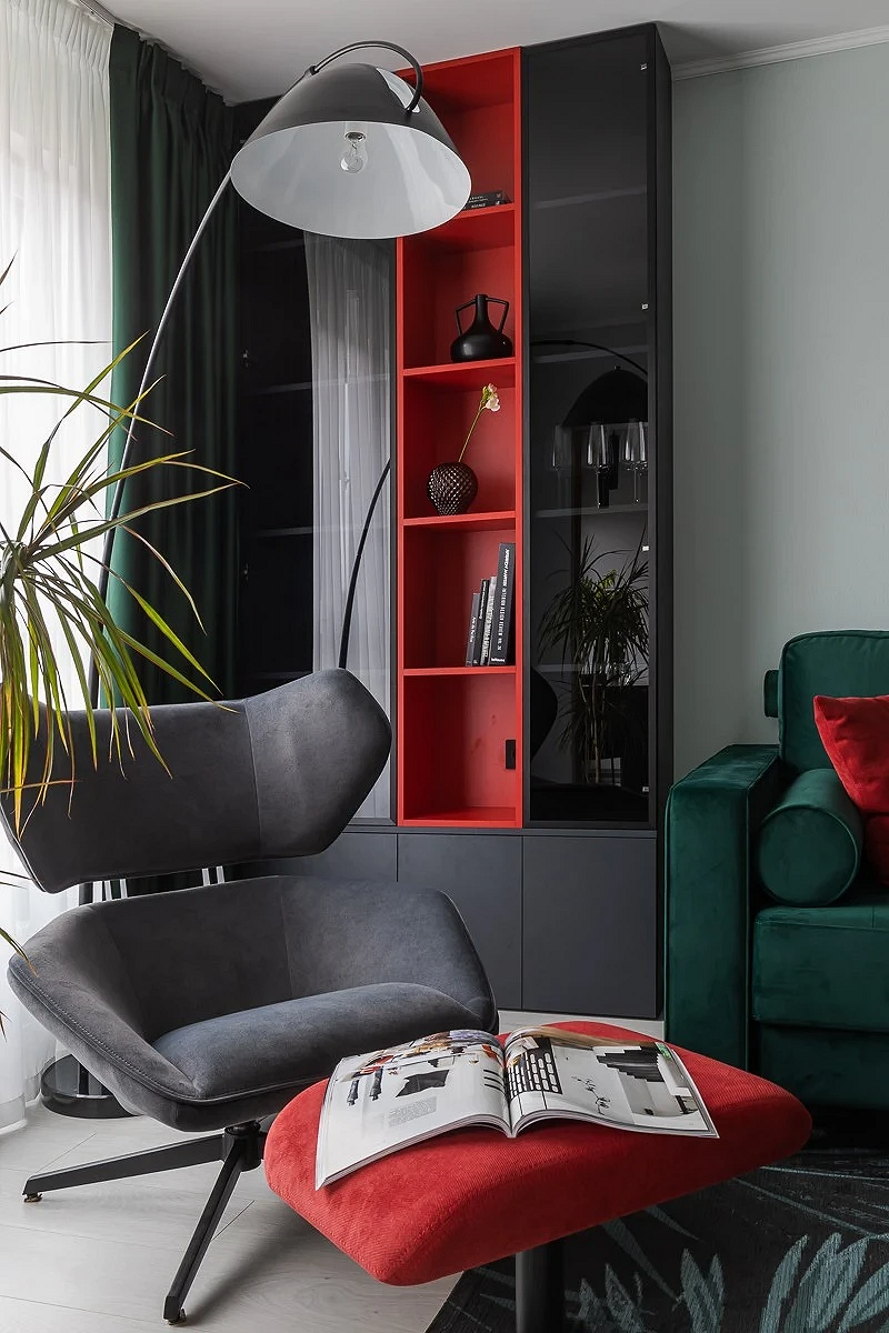 Вещи с историей прибавляют интерьеру солидности и, несомненно, повышают его стоимость в глазах окружающих. Дизайнеры часто аккуратно вписывают винтаж в современные пространства: например, как в этом проекте, где в яркую гостиную добавили раритетный буфет. Так что если вам достались от бабушки старинная горка или красивое серебряное блюдо, найдите им место в комнате. Если нет — поищите любую, хоть маленькую, старинную деталь для вашего интерьера на блошиных рынках, барахолках.