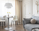 Современная классика — еще одно удачное решение. Этот стиль предполагает опять же светлую палитру оформления и лаконичность, которая, впрочем, допускает декор в обстановке, если он не слишком вычурный. В отличие от двух предыдущих направлений здесь заметно больше вещей и деталей обстановки, поэтому помещение выглядит более изысканно и уютно, однако по той же причине визуально оно становится более камерным и маленьким, что может оказаться критичным для небольших комнат.