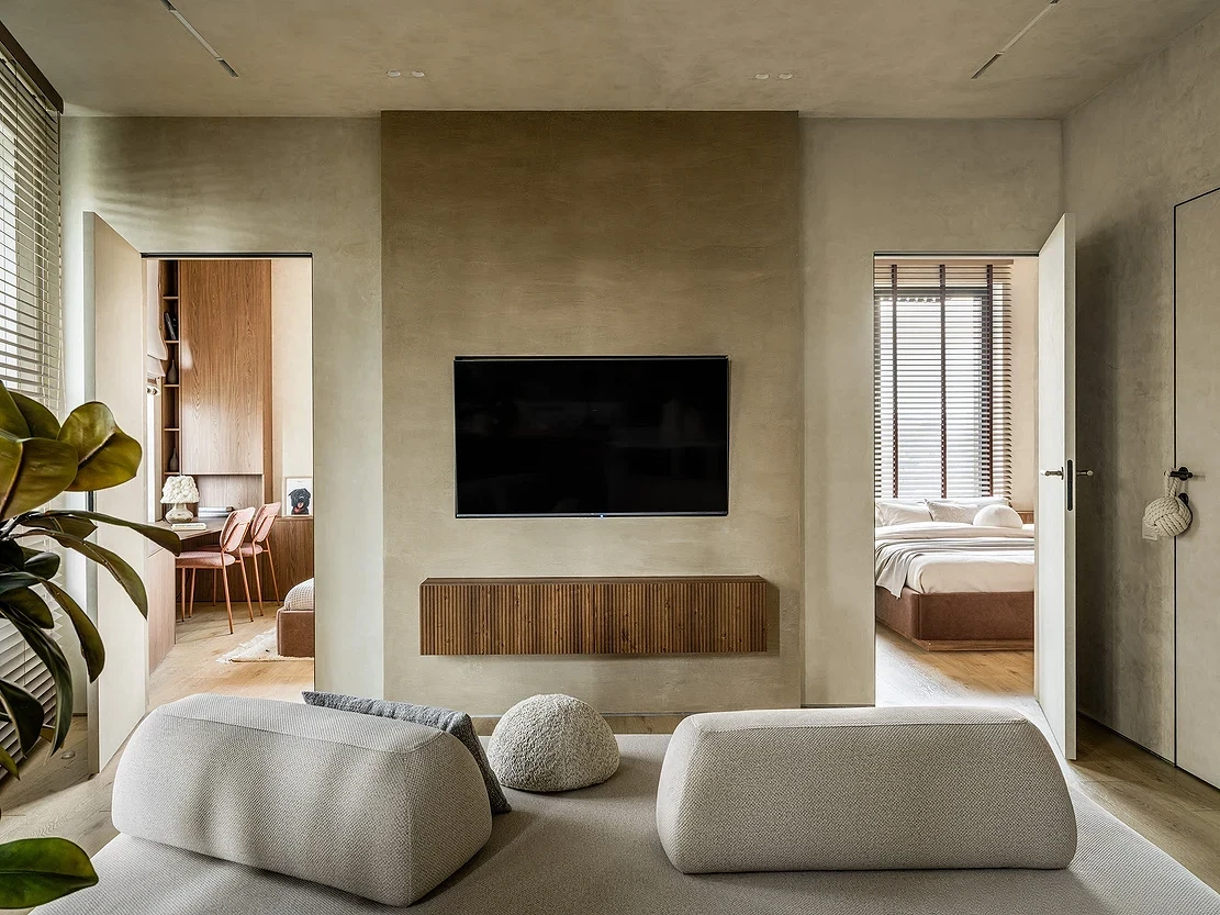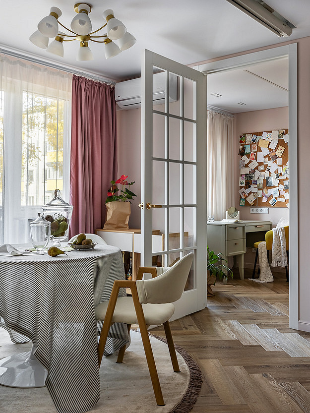 - В эту комнату легко попасть из всех остальных, а значит, будет проще собираться там всей семьей для общения и отдыха.