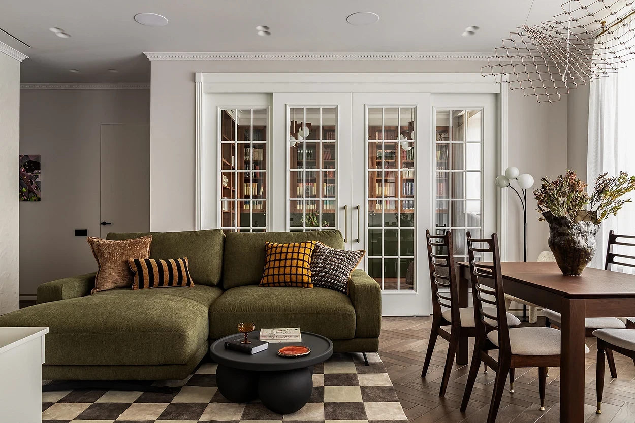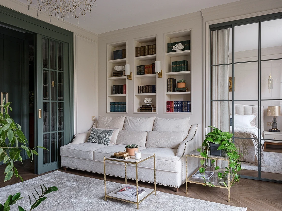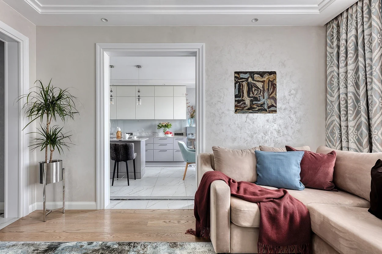 Продумывая дизайн проходной гостиной, приходится учитывать больше нюансов, чем при оформлении обычной комнаты. Помещение не только должно красиво выглядеть и быть комфортным, но и не терять своей роли в качестве транзитного пути из одной части квартиры в другую. И это накладывает определенные ограничения. Разбираемся, что важно учесть, чтобы интерьер проходной гостиной получился удобным, эстетичным и гармоничным.