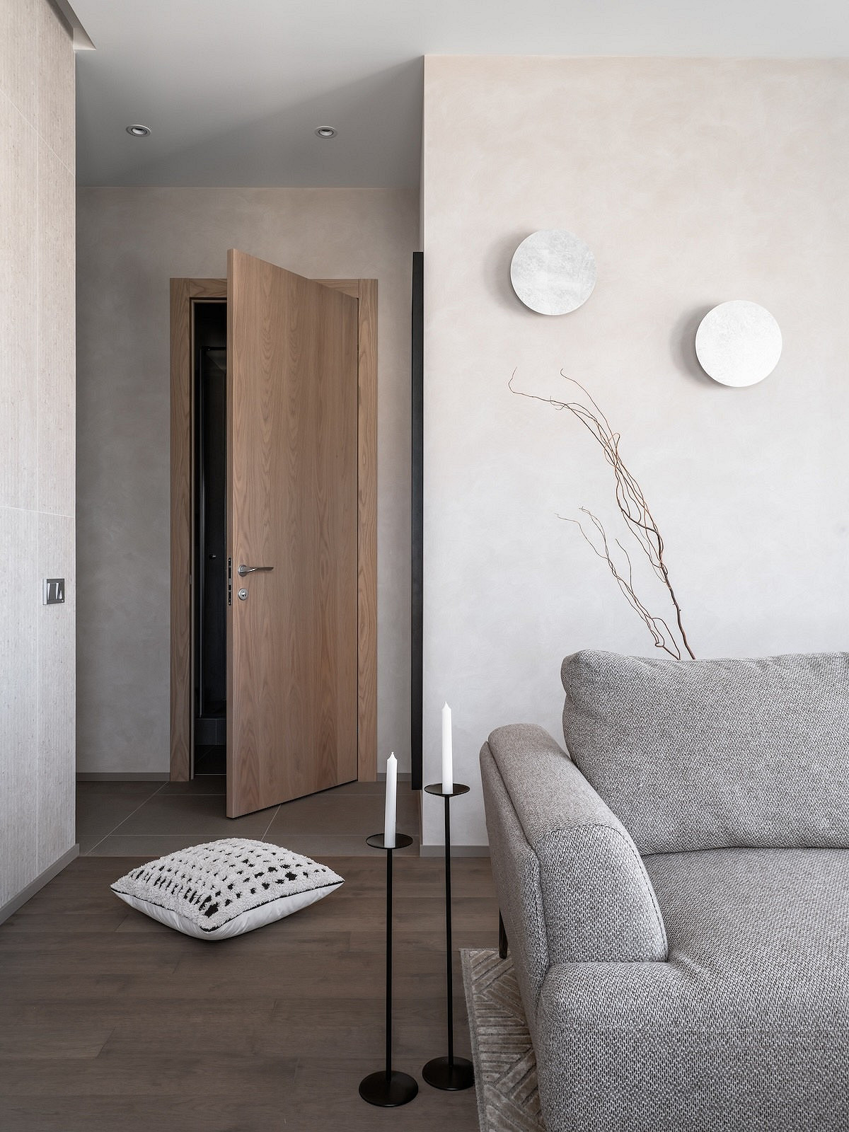 Впрочем, нередко эту часть стены специально уменьшают, расширяя дверные проемы и увеличивая их высоту. Такой интерьер смотрится более элегантно и упрощает передвижение по комнате. А если у вас узкая проходная гостиная, напоминающая коридор, то уменьшение этой части стены — практически единственно возможный вариант, позволяющий разместить кресло, пуфик или небольшой столик так, чтобы они не мешали ходить.