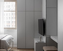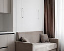Эта маленькая студия по проекту дизайнера Изабеллы Ивлиевой предназначена для девушки-студентки. Чтобы сделать быт комфортным, дизайнер продумала спальное место-трансформер. Кровать буквально «прячется» в шкафу. В сложенном же виде это диван, где можно присесть, чтобы отдохнуть, посмотреть телевизор или почитать книгу, или усадить компанию друзей. Мебель-трансформер — отличное решение для маленьких пространств.