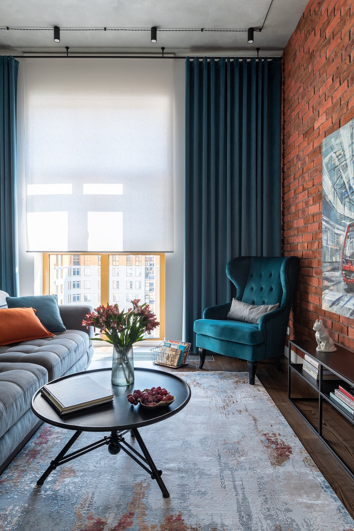В противовес минималистичному популярен другой интерьер — более живой, характерный и индивидуальный. Фото современных штор в зал из дизайнерских проектов демонстрируют, что оконный текстиль в таких пространствах становится важной частью общей композиции. Он все еще достаточно лаконичный, но допускается использование более ярких, насыщенных цветов, нескольких слоев. Например, дуэт классических полотен, римских или рулонных. Хотя многослойные тандемы могут быть минималистичными. Например, если использовать тонкие занавески и жалюзи.