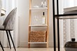 Если позволяет пространство, можно организовать рядом с раковиной целый мини-стеллаж. Только помните, что перегружать открытые полки не стоит, это сделает их неопрятными.