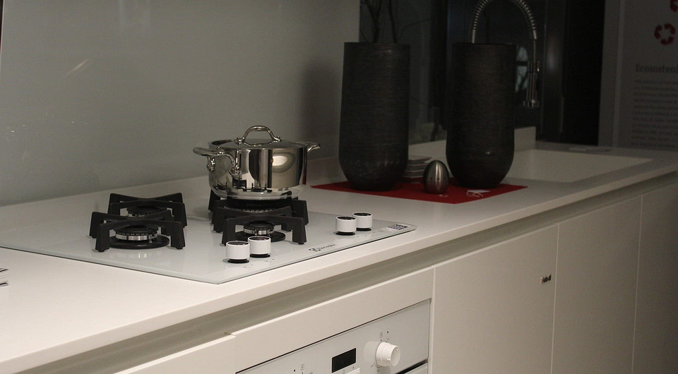 На белой будут видны все пятна, а на черной — бесконечная пыль. В идеале выбирайте столешницу с многочисленными вкраплениями темных и светлых цветов. Лучший выбор — материалы под камень. Мечтаете о деревянной? Будьте готовы к тщательному уходу и уборке после каждой готовки.