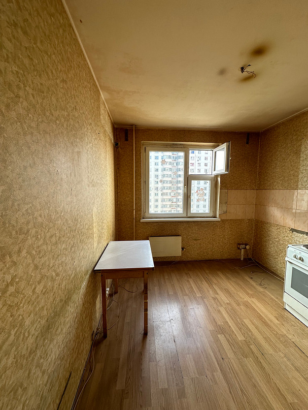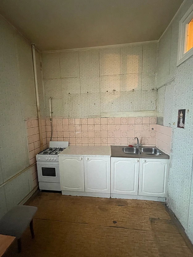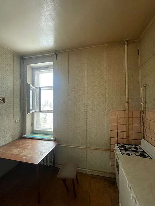 До преображения эта кухня выглядела типично для вторичного жилья со старым ремонтом: пестрые обои и пол в сочетании с контрастной мебелью создавали ощущение тесноты. Дизайнер превратила устаревший интерьер в светлое и функциональное пространство для женщины, переехавшей из загородного дома. Громоздкую мебель заменили белым угловым гарнитуром со шкафами до потолка. Всю технику и хранение интегрировали в единый контур, освободив центр комнаты.