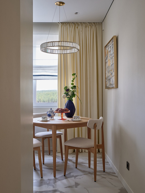 Эту квартиру с живописным видом на озеро заказчик приобрел для себя, но старый вариант жилья с ремонтом из нулевых не соответствовал его образу жизни. Автор проекта работала с исходной планировкой: изолированная кухня с газом и выходом на балкон. В основу концепции лег мягкий минимализм с природными мотивами — это связало интерьер и пейзаж за окном.