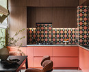 Плитка, уложенная таким способом, стилистически универсальна. Цвет и форма могут быть любыми: однотонная и с неконтрастным рисунком; прямоугольная или шестиугольная, изогнутая. Если хотите получить яркий эклектичный интерьер, можно подобрать цветную или просто контрастную затирку.