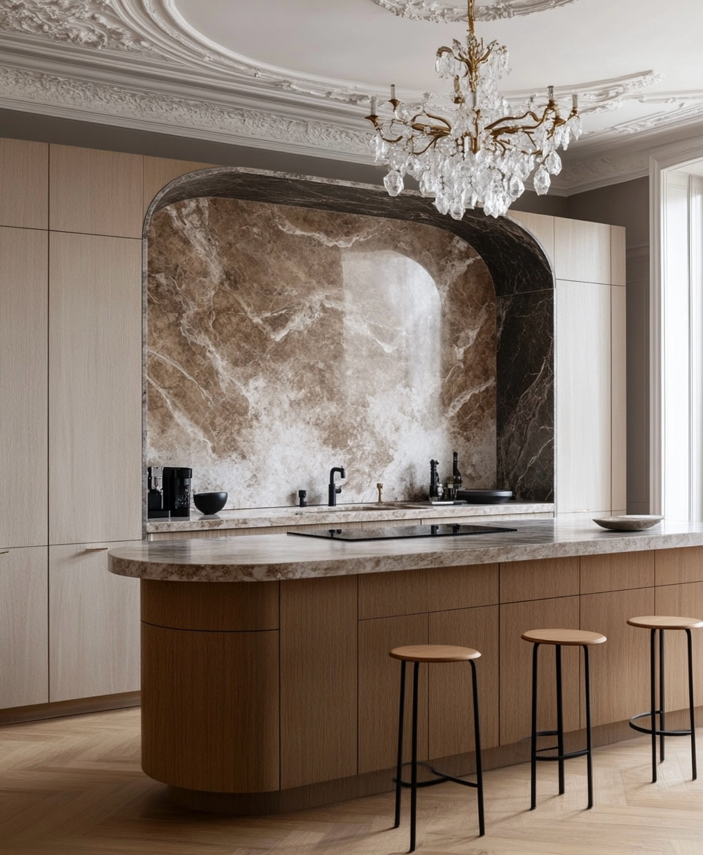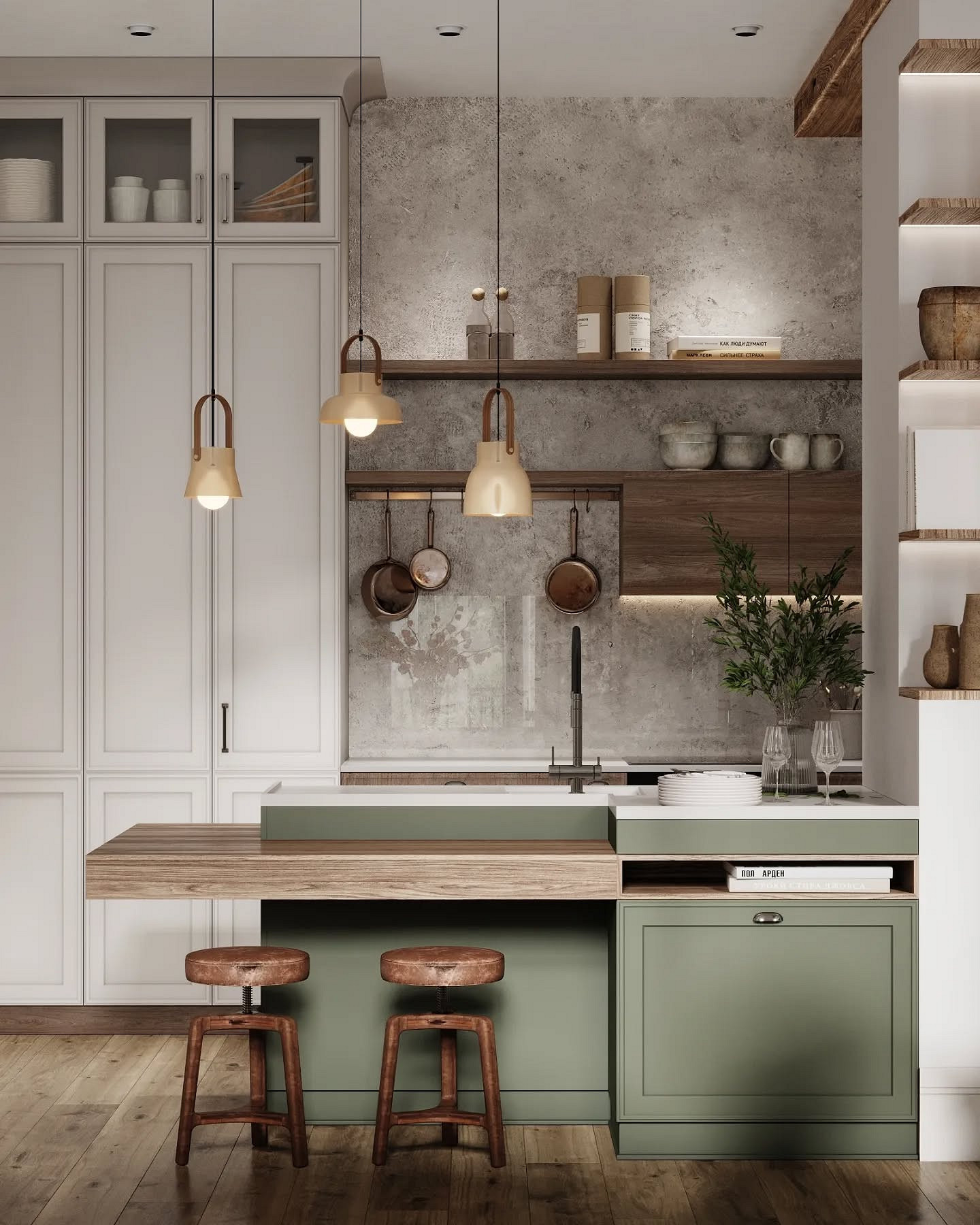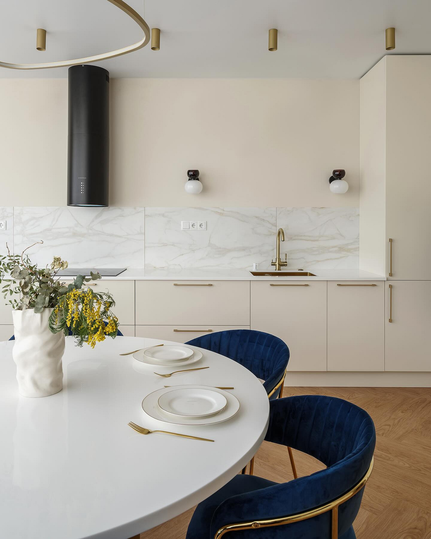 В оформлении зоны готовки все так же главенствует лаконичность, при этом отделочные материалы становятся более тактильными и выразительными. Рассмотрим, какие фартуки для кухни будут модными в 2026-м, на примере основных трендов.