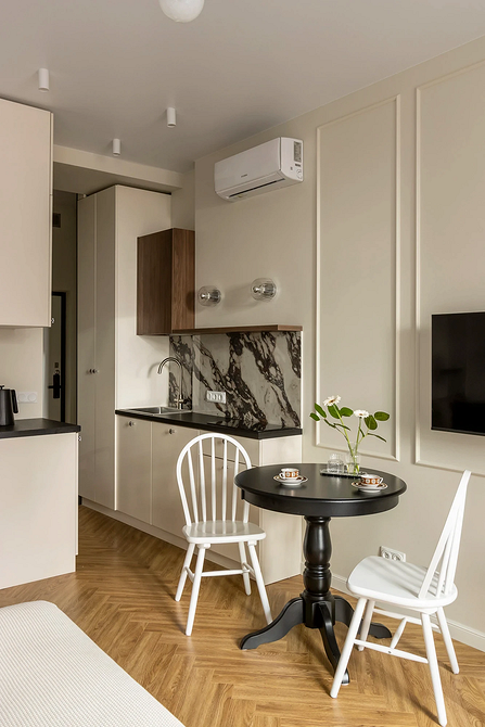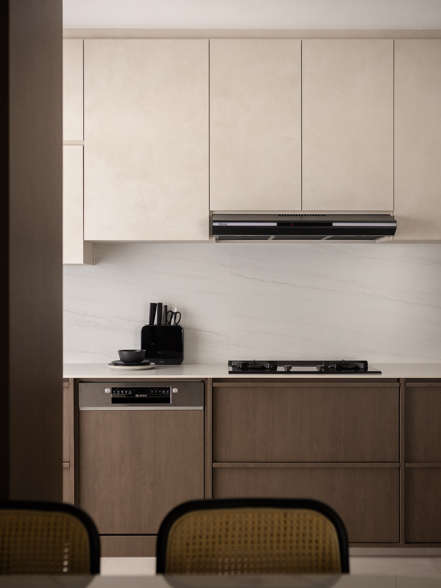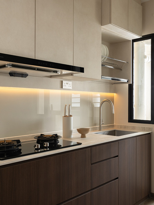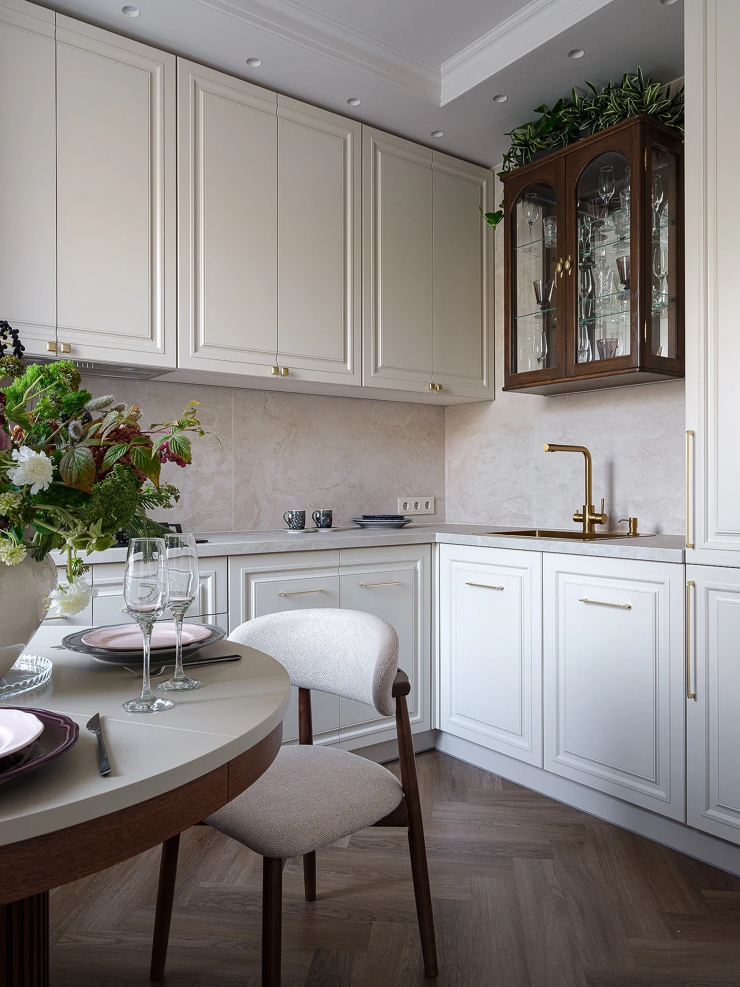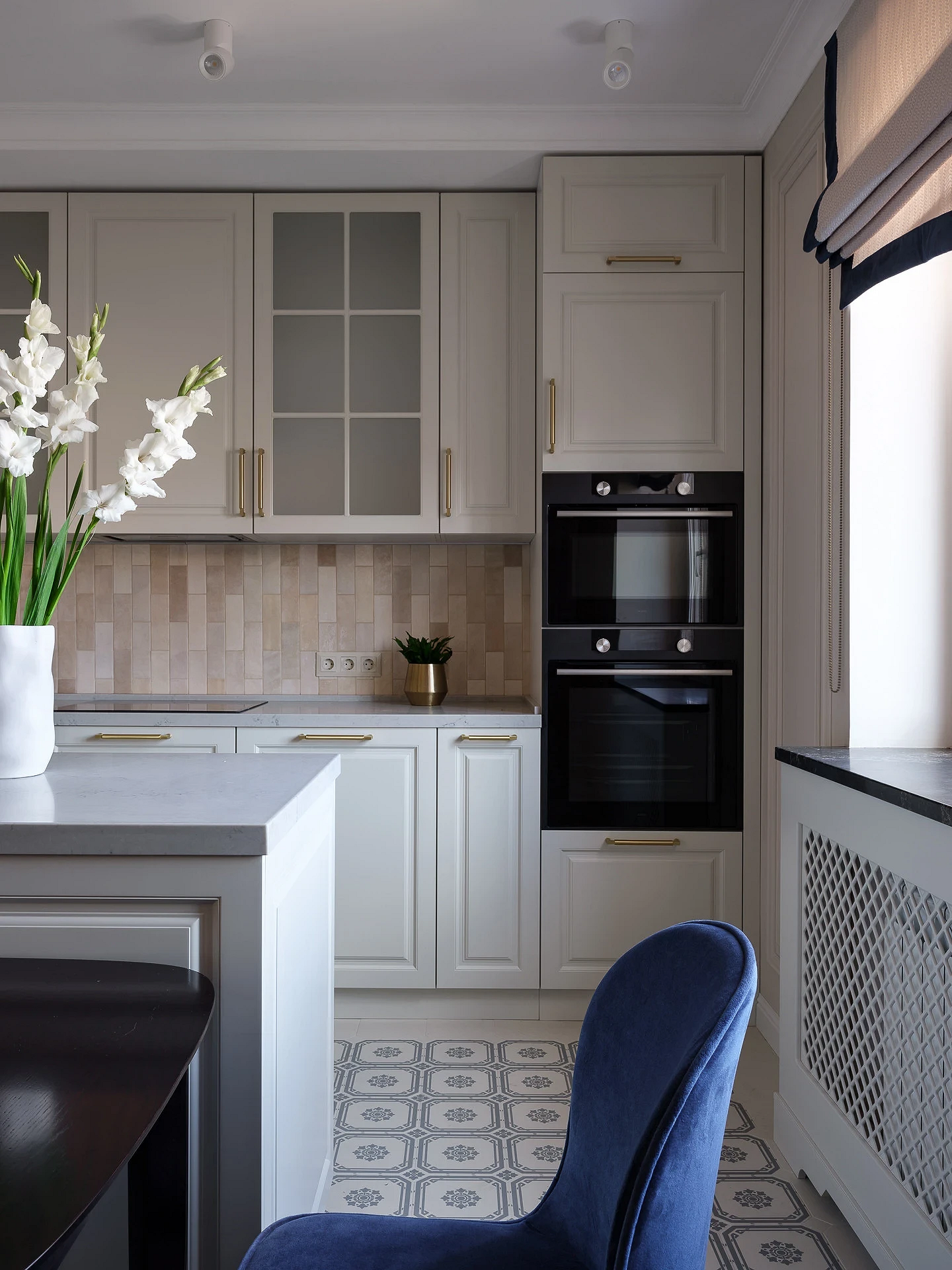 Тренд применим во всех стилях, где важно сохранить визуальную сдержанность. Его часто используют в классике и неоклассике, джапанди, скандинавском стиле, минимализме в духе quiet luxury. Часто фартук становится единственной выразительной деталью, благодаря чему кухня не выглядит перегруженной.