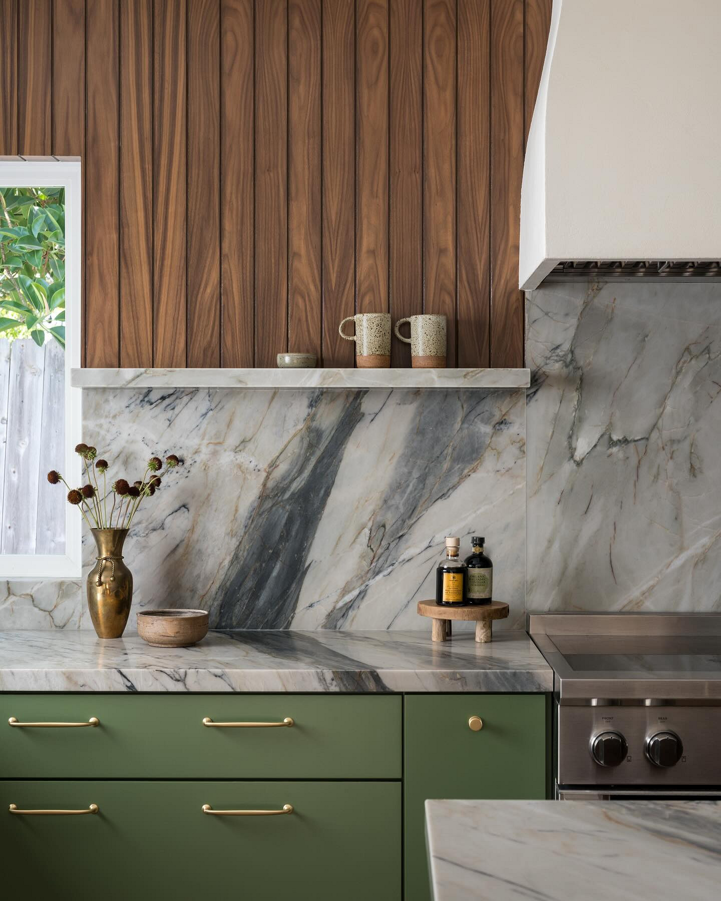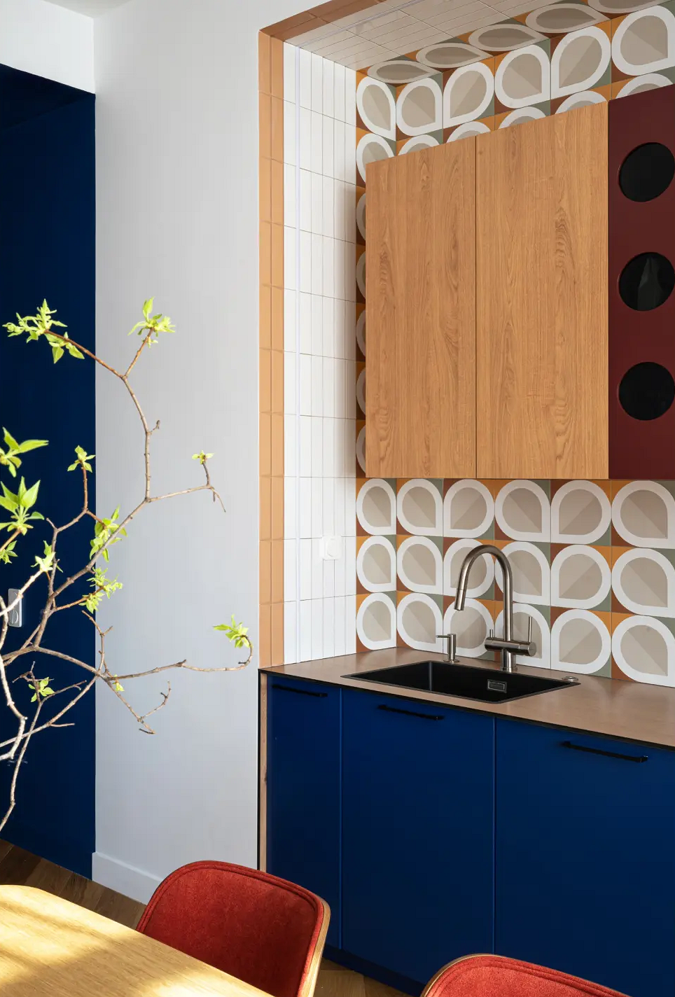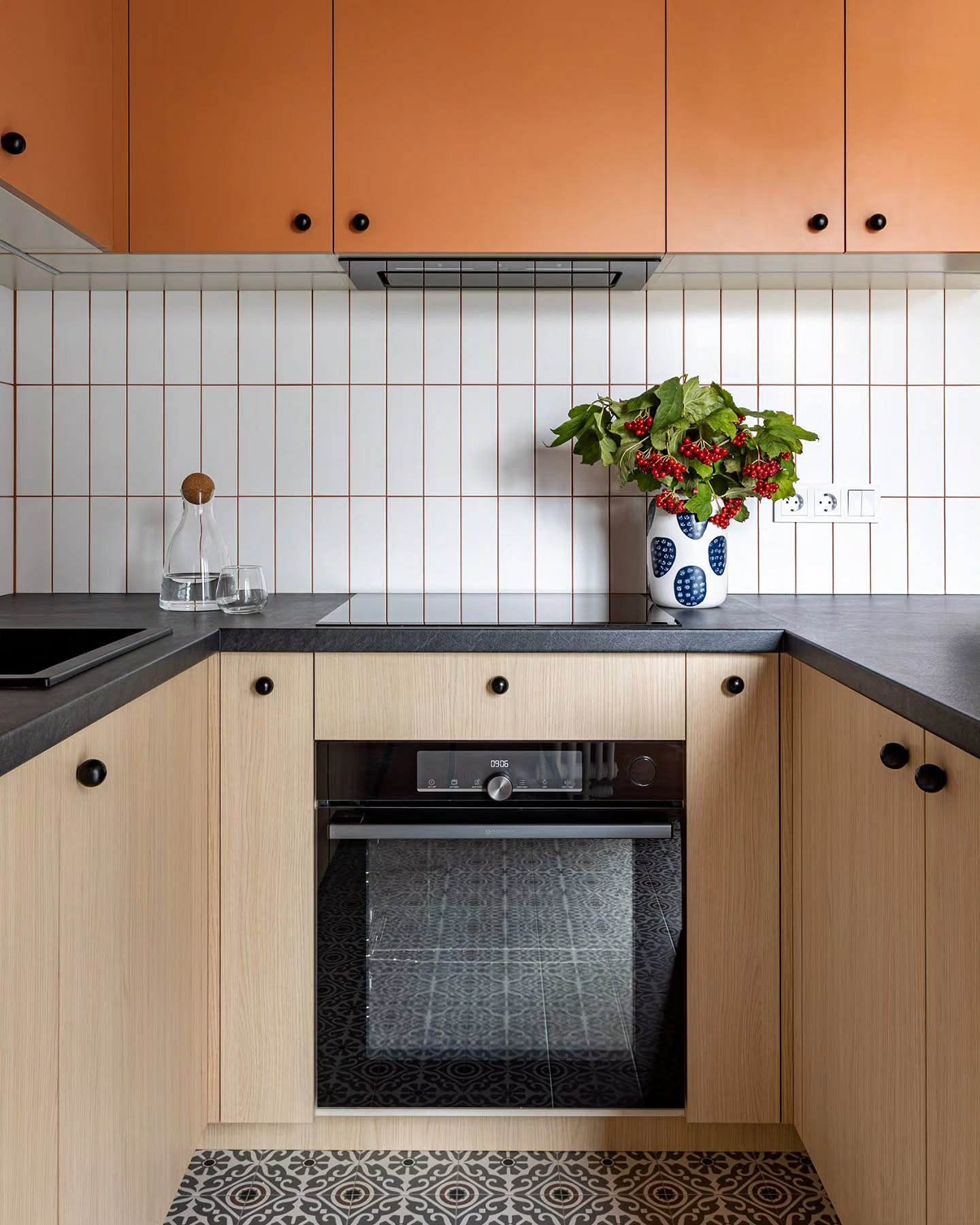 Крупноформатный фартук удобен и в быту: меньше мест, куда может попасть грязь, а значит, меньше мороки с уходом за поверхностью. Это один из самых функциональных и универсальных трендов последних лет, который сохранит позиции и в 2026 году.
