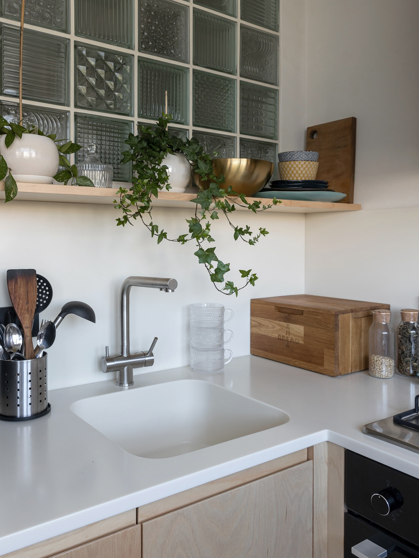 Помимо типичных для фартука материалов, стену над рабочей зоной можно оформить и другими способами. Их используют реже, но именно они придают кухне изюминку и создают выразительный фон.