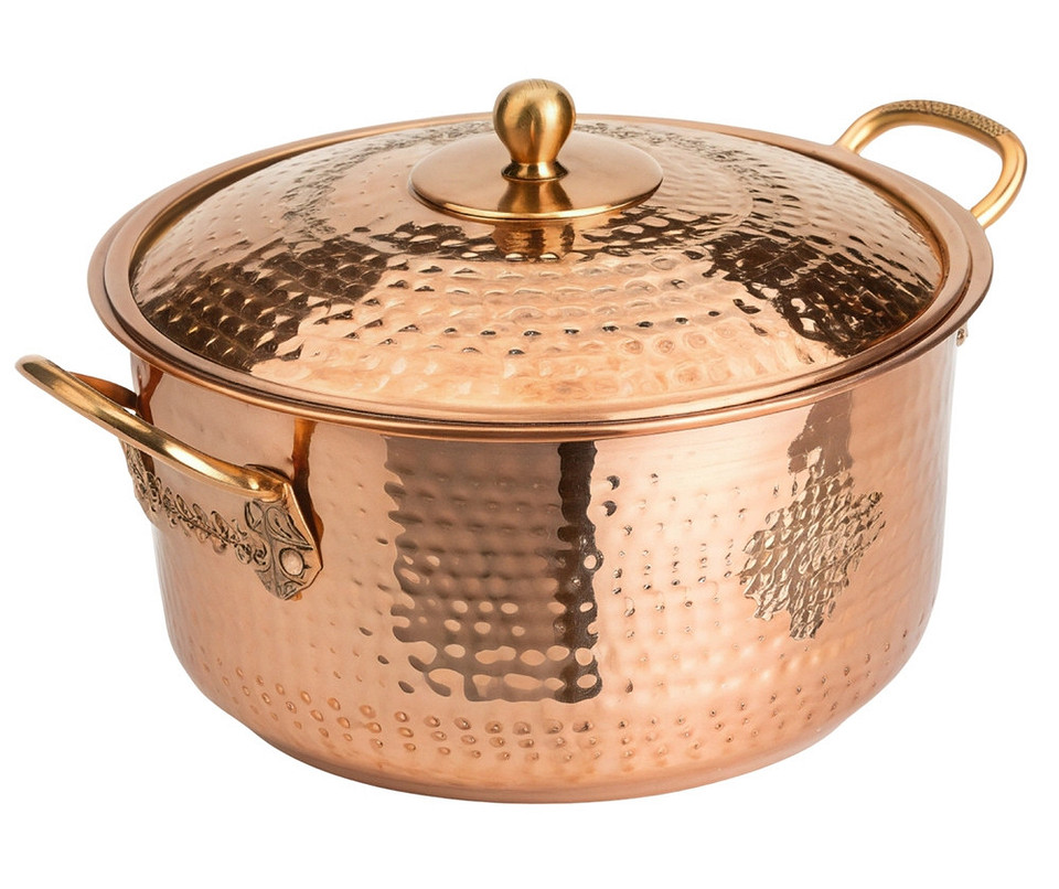 - Алюминий и медь требуют тщательного выбора производителя. Хорошо, если он указывает составы сплавов и тип покрытия, прикладывает сертификаты безопасности. В качественном алюминии блюда готовятся чуть быстрее. Он идеален для пельменей, макаронов, риса, бульонов. Медь подходит для долгой варки на медленном огне — густого варенья, тушеной говядины в соусе.