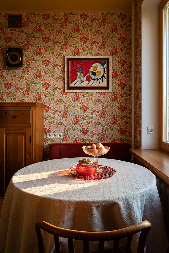 Несмотря на популярность современного дизайна, винтаж все так же любим многими. Это может быть как просто тематика прошлого, так и стилизация под оптимистичное ретро или mid-century. На уровне отделки тренд проявляется в выборе полотен ярких жизнерадостных цветов и с характерными для этих стилей орнаментами.