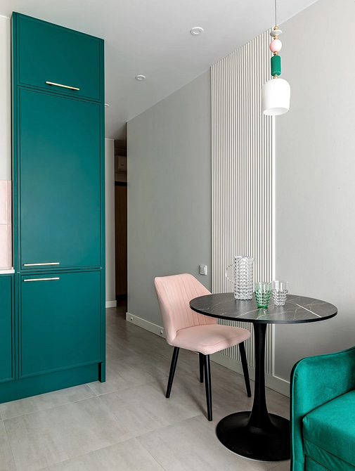 Если вы хотите получить лаконичный дизайн, подбирайте другую отделку под стать: также матовую или полуматовую, однотонную или в расцветке природных материалов. С деревом хорошо сочетается фактура камня или бетона, можно добавить детали из латуни или меди.