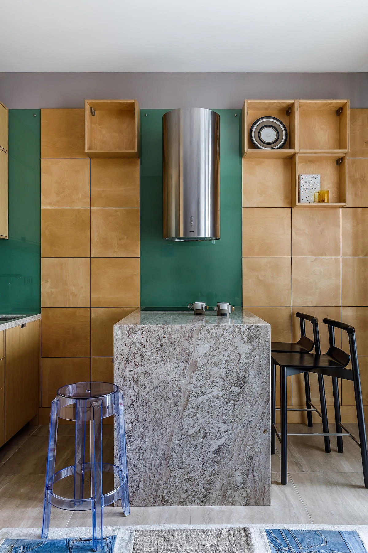 В зависимости от того, какими панелями сделать кухню вы хотите, их можно использовать в мокрой зоне (например, стеклянные или акриловые) или, наоборот, подальше от концентрации влаги и пара (все остальные материалы). Во втором случае для рабочей зоны как раз применяют более практичную отделку вроде керамики или водоотталкивающей краски.