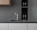 - Искусственный камень популярен благодаря своей пластичности. Из него можно выполнять бесшовные столешницы и подоконники, интегрировать в поверхность мойку. Материал боится сильных ударов и высоких температур, но легко реставрируется.