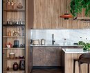 Органические силуэты и плавные линии хорошо сочетаются с натуральными фактурами и светлыми спокойными цветами. На такой кухне хочется находиться как можно дольше, она дает ощущение безопасности и комфорта.