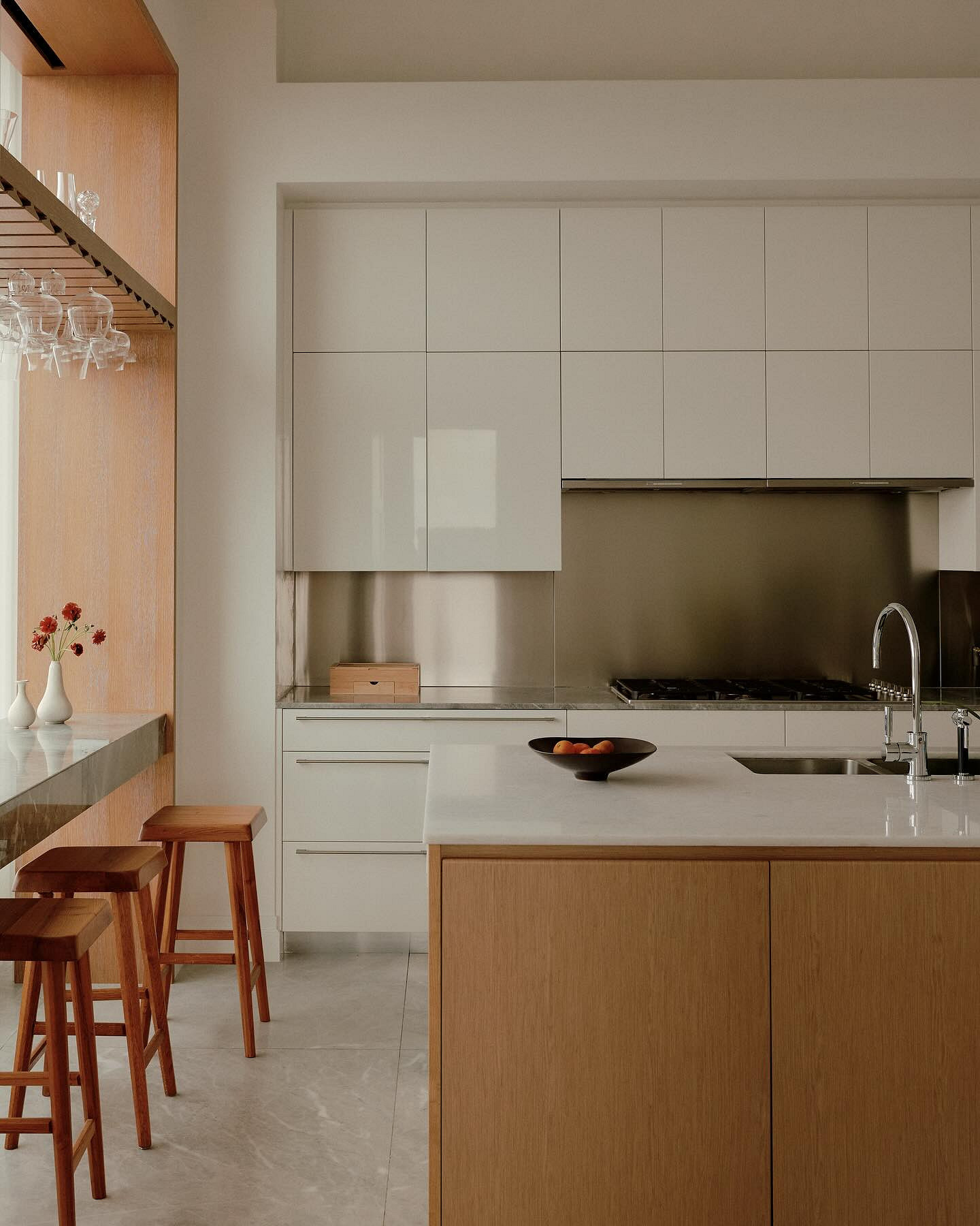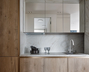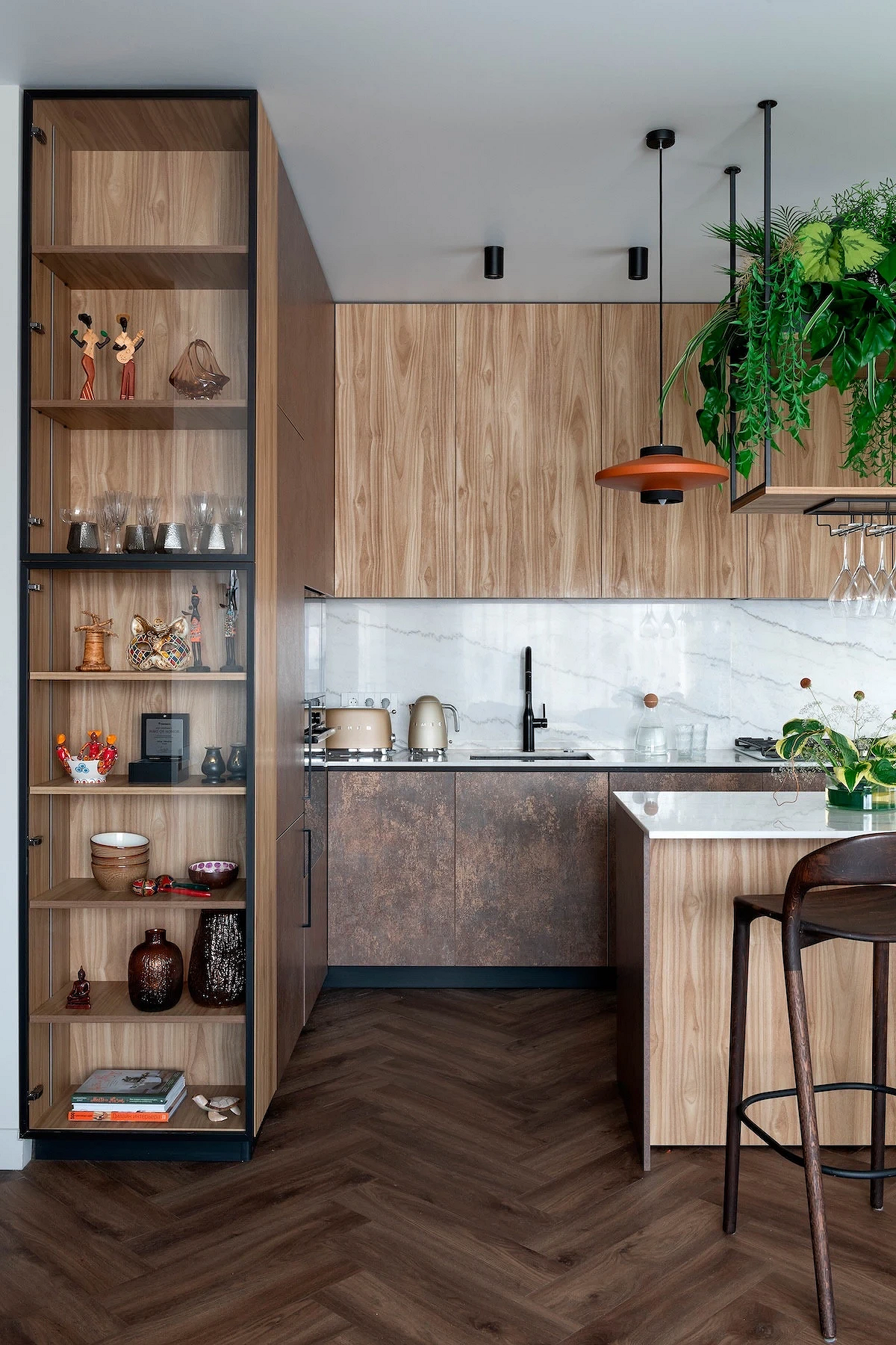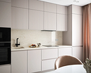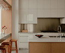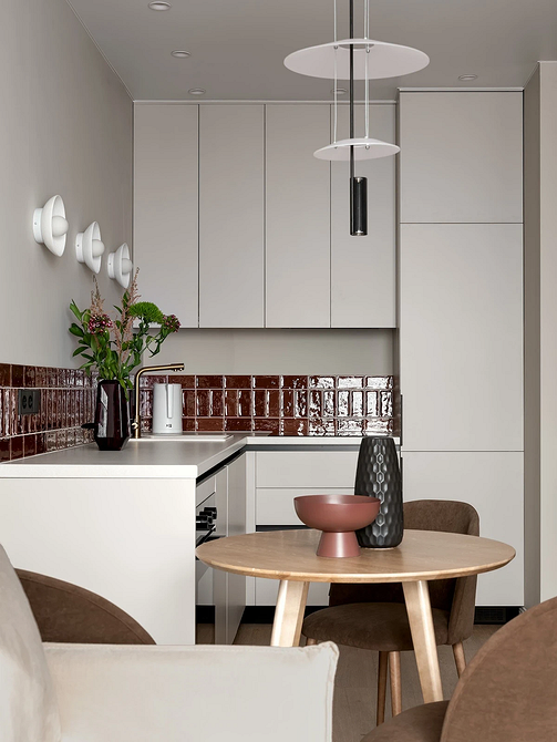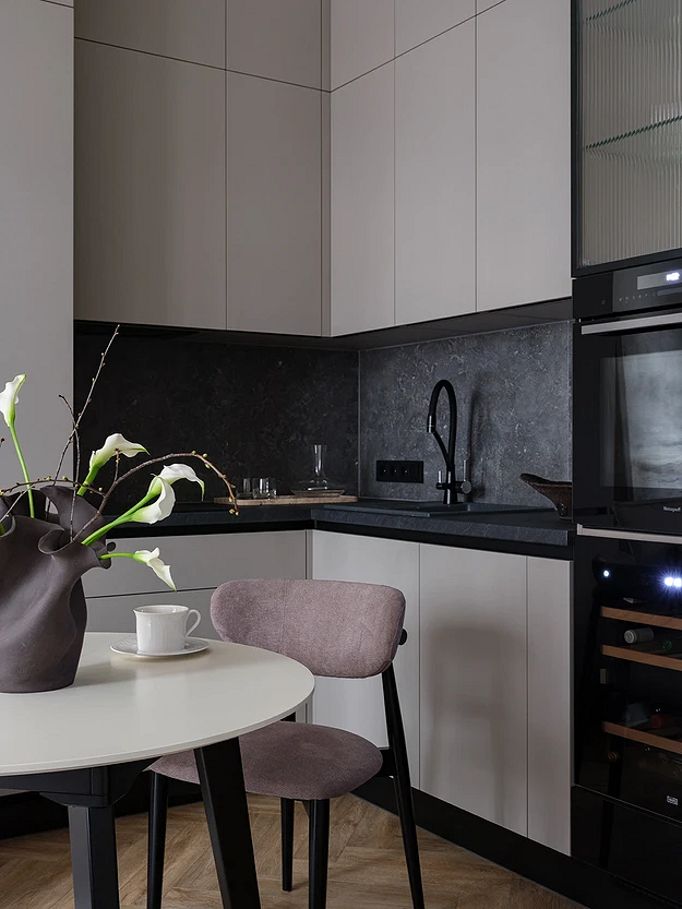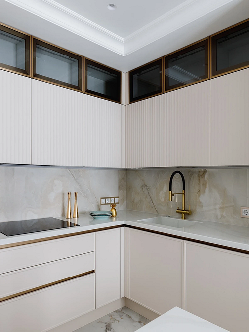 Решение особенно удобно для небольших кухонь и студий, где важно использовать каждый сантиметр рационально. Антресольные секции подходят для хранения предметов, которые не нужны постоянно, а подъемные механизмы и лифты делают систему удобной и безопасной. Кроме того, такой подход к оформлению хранения и планированию гарнитура делает интерьер более гармоничным и визуально целостным.