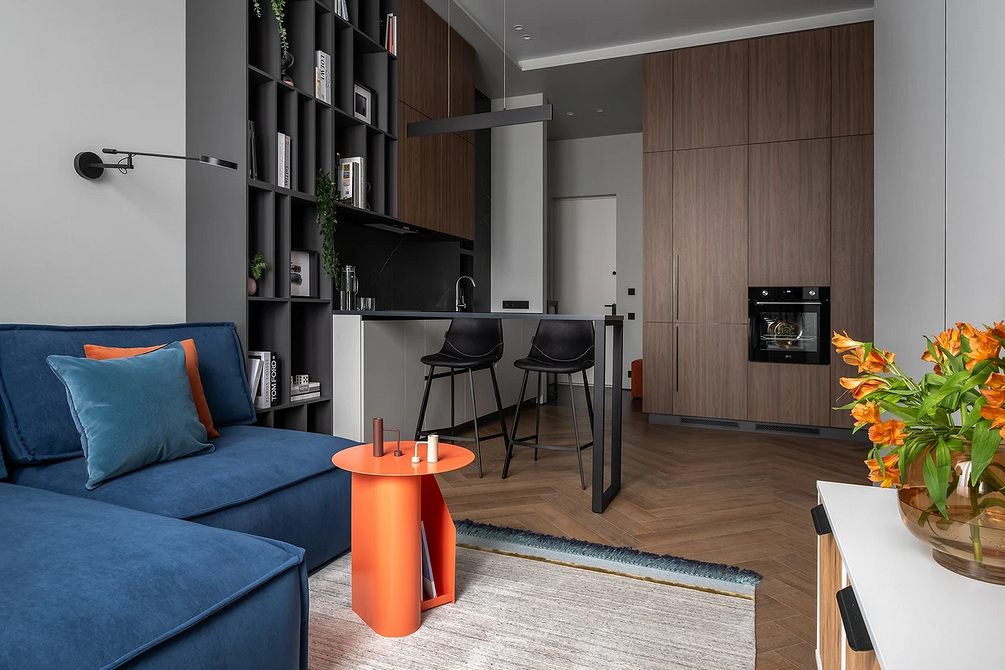 Вместо перегородок и простенков дизайнеры используют для зонирования цвета и фактуры. Чтобы сделать зоны более мобильными — простые и сложные трансформеры. Объединенное пространство выглядит просторно и легко, что особенно важно для маленьких квартир.