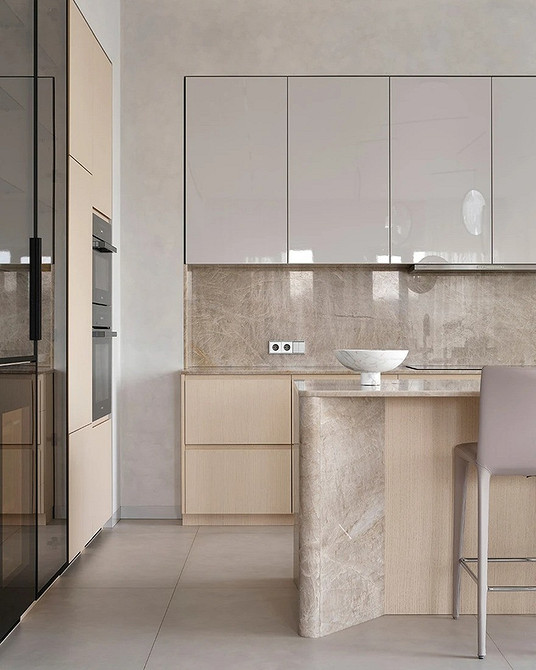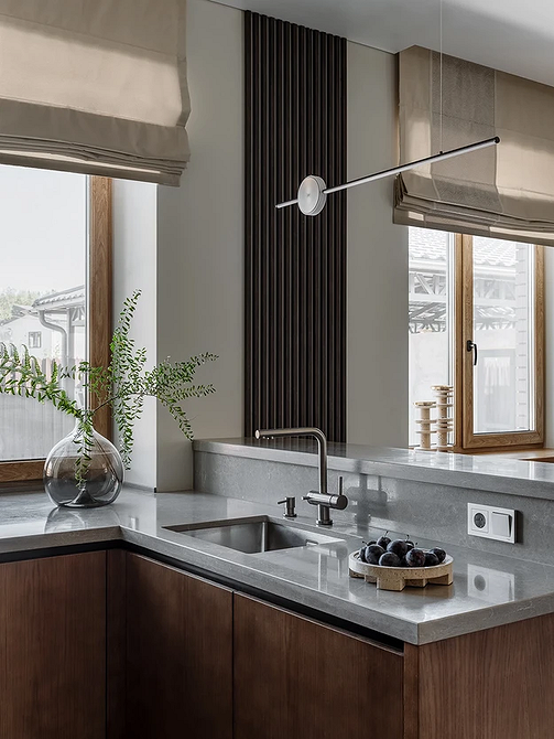 В кухонном дизайне тихая роскошь проявляется через лаконичные фасады, ручную работу и индивидуальные решения под заказ. На смену броскому декору приходят тонкие акценты: красивая текстура камня, мягкий блеск фурнитуры, естественные оттенки дерева.