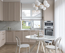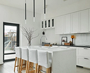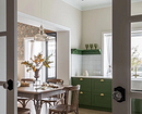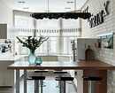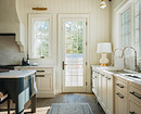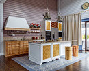 Важно и расположение окон, поскольку оно существенно влияет на планировку. В этом месте можно разместить раковину, чтобы мыть посуду, любуясь природой. А если площадь кухонной зоны ограничена, подоконник можно превратить в продолжение рабочей поверхности. Главное преимущество в том, что при создании интерьера кухни в частном доме с окном владелец не ограничен строгими расположениями коммуникаций и может все спланировать заранее.