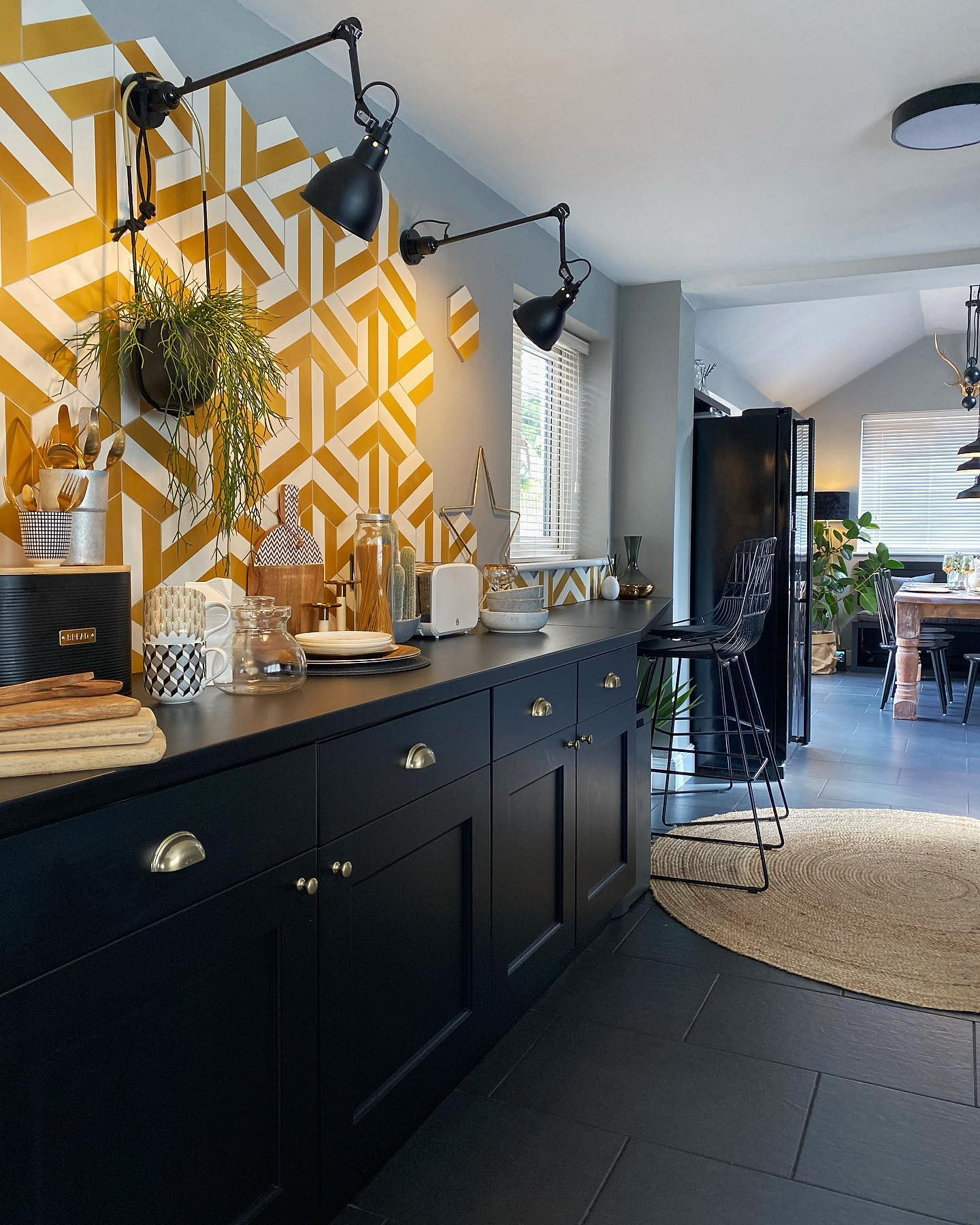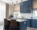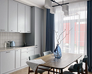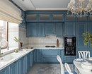 Такое расположение мебели считается оптимальным, поскольку реализует правило рабочего треугольника: мойка, плита и холодильник находятся на равном расстоянии друг от друга. При планировании учитывайте, что элементы треугольника должны находиться друг от друга на расстоянии не больше 270 см и не меньше 120 см.