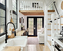 Поскольку лофт не предполагает дробления пространства на отдельные маленькие комнаты, дизайн большой кухни в частном доме включает также столовую, гостиную, а иногда даже рабочю или спальную зону