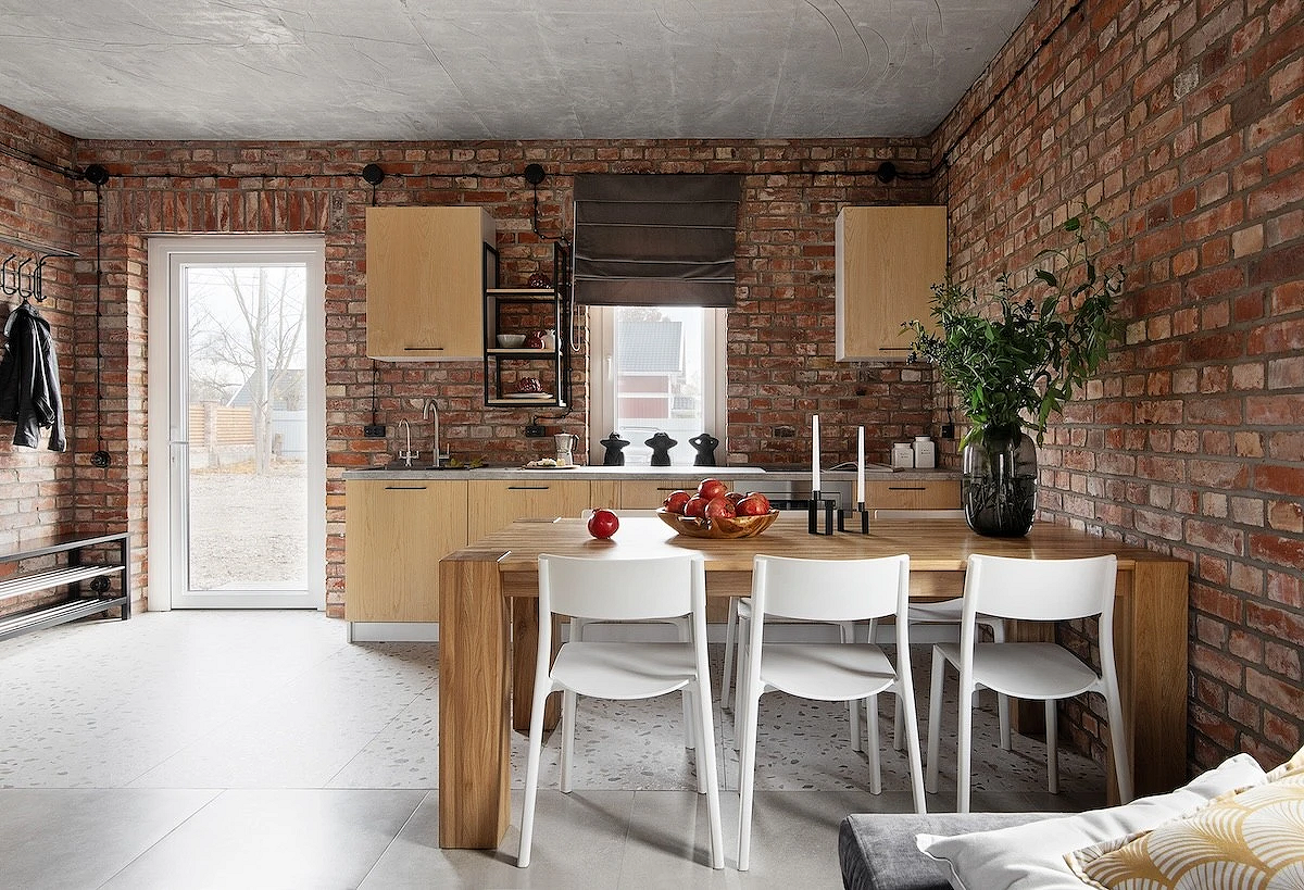 В частном секторе интерьер и внешнее оформление тесно связаны: стройматериалы и облицовка здания зачастую определяют и внутреннее содержание. Ниже — фото кухни в частном доме в разных стилях.