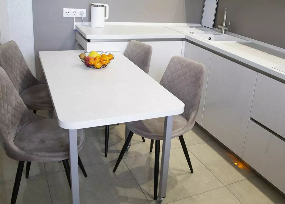 - При выборе размера столешницы отталкивайтесь не от количества людей в семье, а от того, сколько человек собирается за едой одновременно.