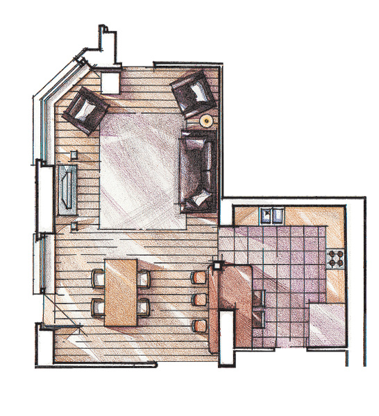 Главное пожелание хозяина состояло в том, чтобы максимально расширить небольшую площадь. Открытое пространство, обилие воздуха, отсутствие лишних вещей и декора