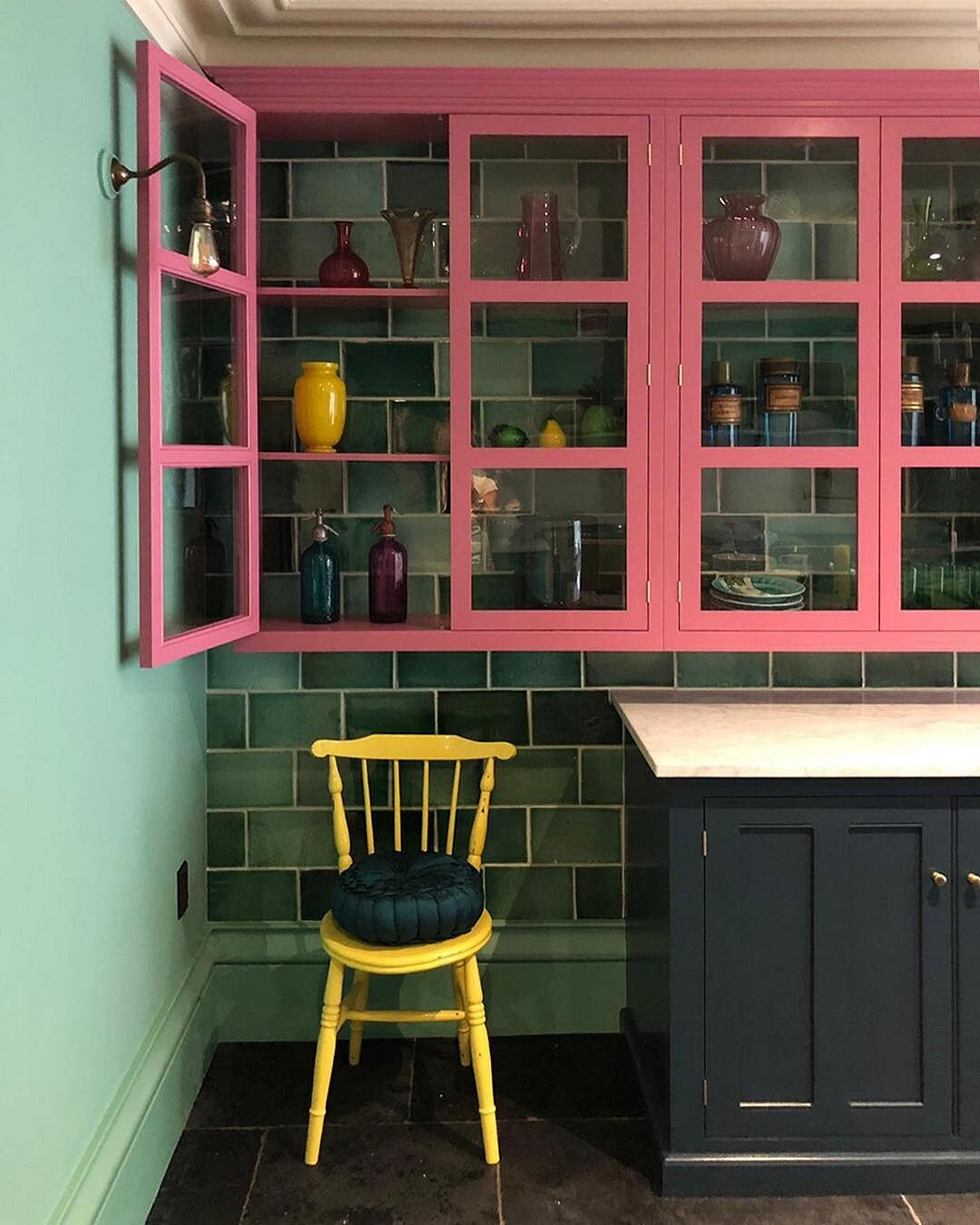Оливковый, болотный и малахитовый фасады удачно контрастируют с кремовым и молочным. Если вам нужна мебель для классического интерьера или прованс, обратите внимание на это сочетание.