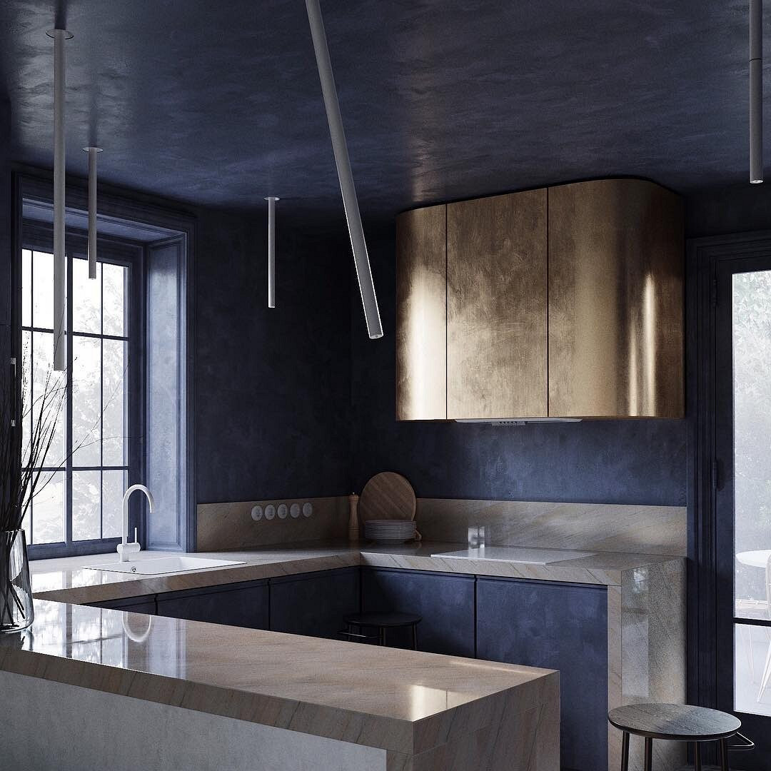 - Черные фасады более уместны в больших пространствах (больше 15 кв.м.). В тех, что поменьше, лучше использовать коричневую, синюю, серую палитру.