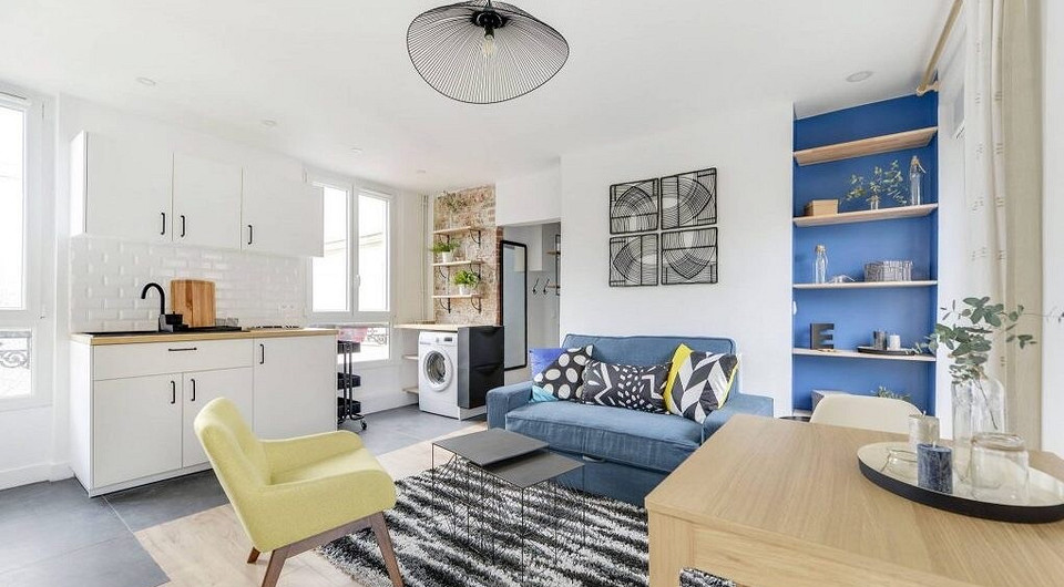 Когда в маленькой квартире все окна выходят на одну сторону и к этой стороне проведены коммуникации, другого варианта, кроме как организовать там кухню — нет. Но как быть с естественным освещением в других зонах? Оградить кухню прозрачными перегородками.