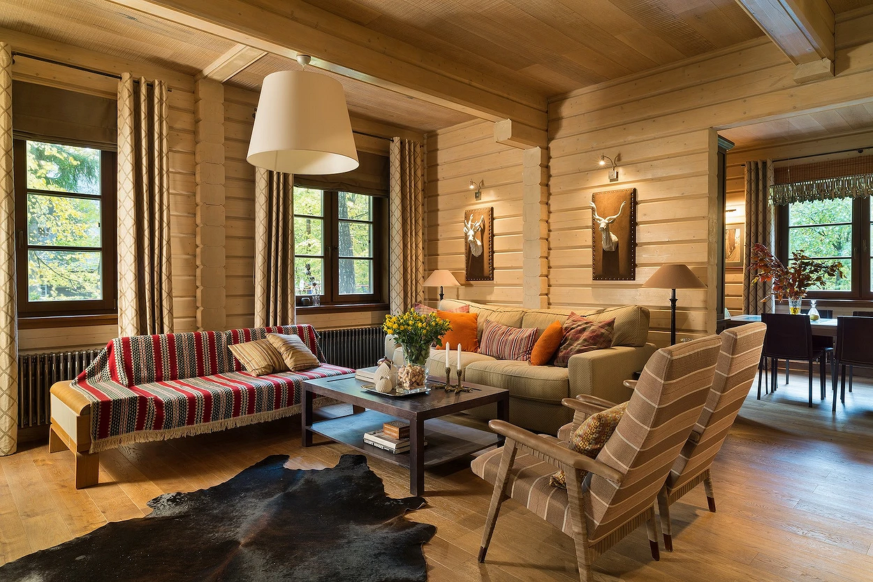 Шале в интерьере разных комнат