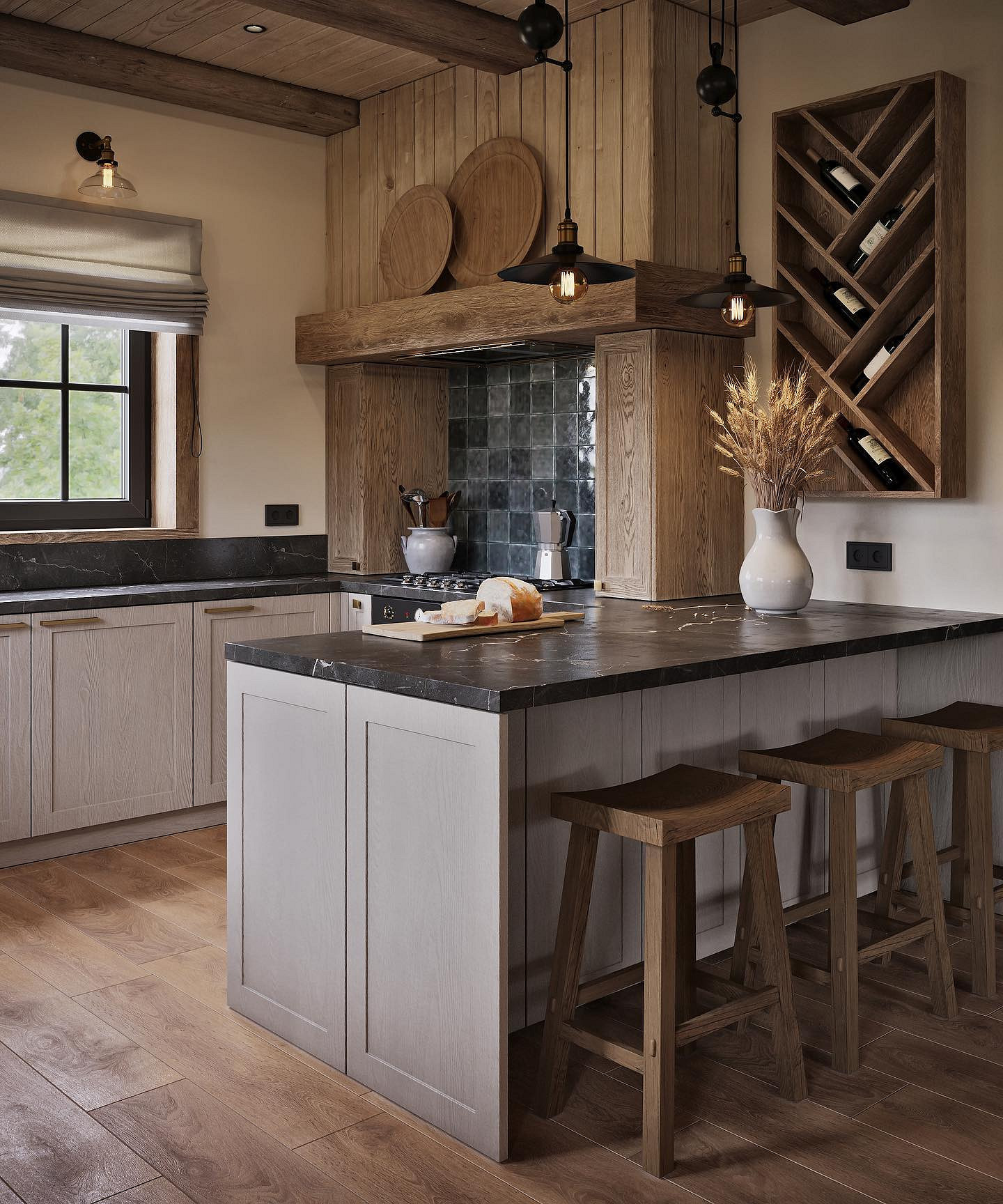 Интерьер кухни в стиле шале