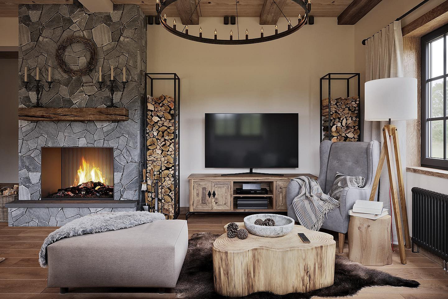 Это направление идеально подходит для загородного дома. И не обязательно жить в горах — достаточно создать ощущение тепла, уюта и защищенности, ради которого этот стиль и выбирают. Рассмотрим, как выдержать все ключевые элементы эстетики.