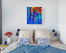 Эта квартира по проекту дизайнера Аси Гриб предназначена для временных остановок семьи из трех человек в Санкт-Петербурге (постоянно заказчики живут за городом). Подиум — зона спальни — отделен от общего пространства тонированными стеклянными перегородками. Таким образом достигается приватность, но и пространство не перегружено глухими стенами. Автор проекта применила несколько приемов для визуального расширения небольшой площади. Среди них: фотопанно в изголовье с изображением гор, а также прозрачное стекло перегородок с отражающим эффектом (создает ощущение расширения). Под подиумом — система хранения, где заказчики могут хранить спортивный инвентарь (велосипеды, лыжи, самокаты).