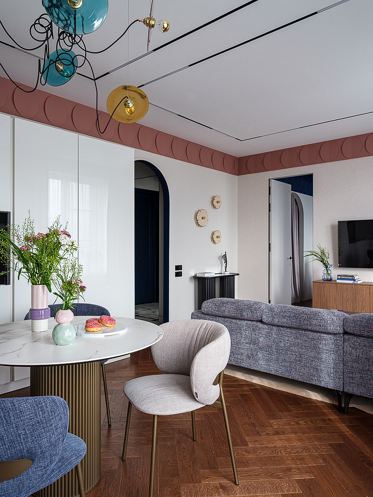 Арочные формы снова вошли в свой пик трендов. Теперь они уместно смотрятся не только в классике, но и украшают современные интерьеры. Форму арки можно раскрыть по-разному. Это и самое очевидное: пустой дверной проем. И выкрас на стене. И форма молдинга, который украшает стену. Даже форма плитки на фартуке или в ванной. Если вам нравится тренд на мягкие формы, арка станет удачным выбором.