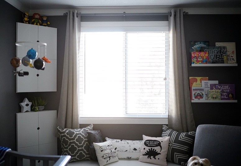 Фильмов и мультфильмов про НЛО и на схожие темы огромное множество. Например, в этой детской использовали фотообои с видом на город и летающими объектами, и мягкие подушки-игрушки в виде мультяшных инопланетян.