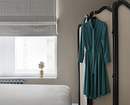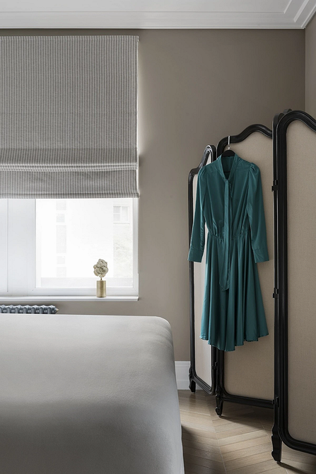 За такой мобильной перегородкой можно спрятать вешалку для костюмов или стул, на который удобно складывать одежду, которую вы уже надевали, но еще не планируете стирать. Также можете повесить на нее симпатичную вещь в качестве декора — это придаст интерьеру легкую небрежность и расслабленность.