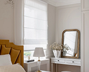 Спальня — то место, где удобнее всего ухаживать за собой. Потому стоит поставить туда туалетный столик с зеркалом и пуфик.