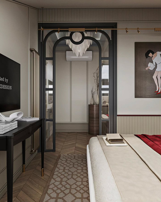 Это та самая классика, когда обычную дверь между комнатами заменяют аркой: красивой закругленной или минималистичной прямоугольной.