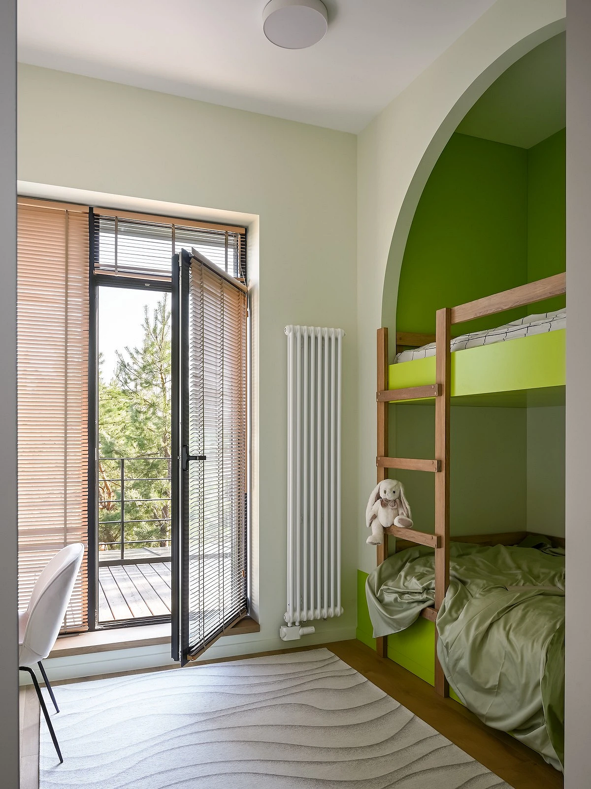 Также в арочные ниши часто встраивают кровати (особенно в детской комнате) или сидения, формируя таким образом уютную зону отдыха. В случае со спальным местом популярен прием, когда всю арку за изголовьем отделывают мягкими панелями. Такое решение добавляет уюта.