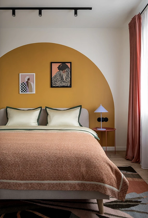 Наконец, не обязательно строить настоящую арку — можно просто нарисовать ее на стене. Для этого берут краску контрастного цвета и рисуют вытянутый полукруг. Получается интересный акцент и ощущение перспективы, будто это вход или портал.