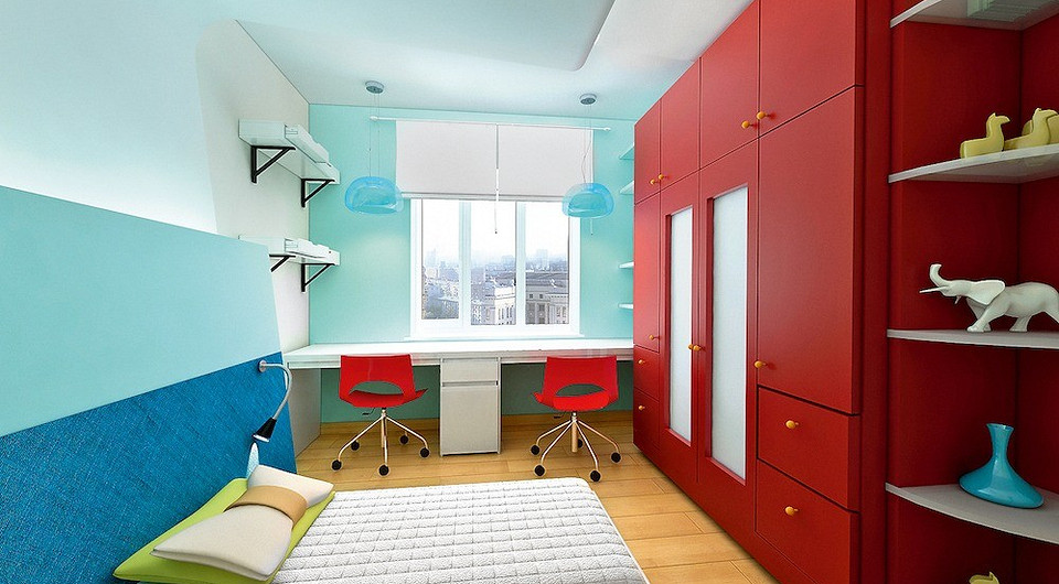 | В детской предусмотрены рабочие места и кровати для обоих сыновей |