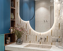 Сценарии света разные, как и положено в современном интерьере. На потолке — точечные светильники и треки, линейные встроенные светильники. В качестве дополнительных сценариев света предусмотрены бра, подвесные светильники (в спальне и над обеденным столом, у зеркала в ванной комнате), а также множество скрытых подсветок, которые позволяют создать уютную, располагающую атмосферу.